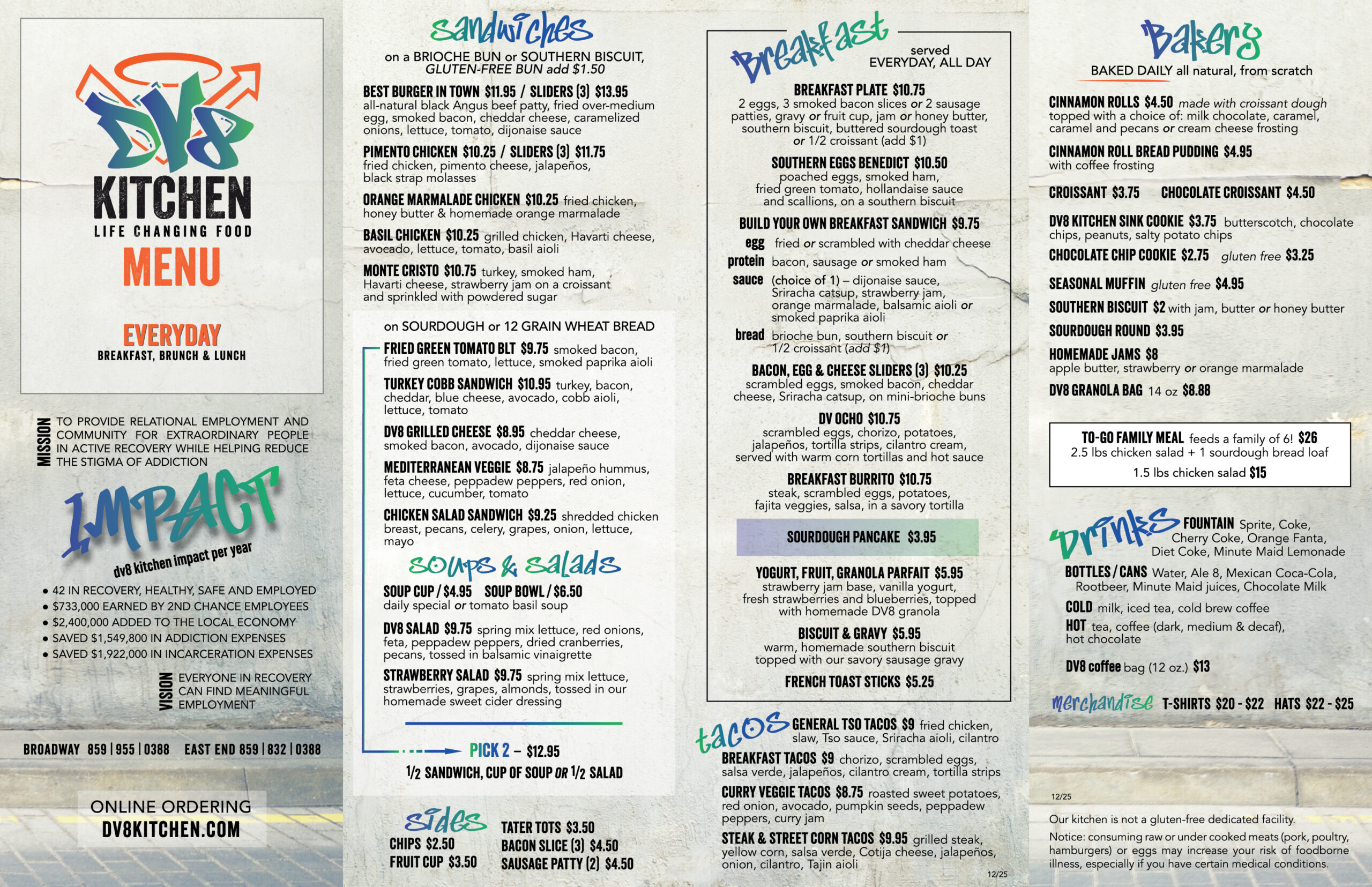 Egg (fried or scrambled with cheddar cheese), protein (bacon, sausage or ham), sauce (choice of 1: dijonaise, smoked paprika aioli, Sriracha ketchup, apple butter, orange marmalade or strawberry jam), bread (brioche bun, southern biscuit or 1/2 croissant – add $1)